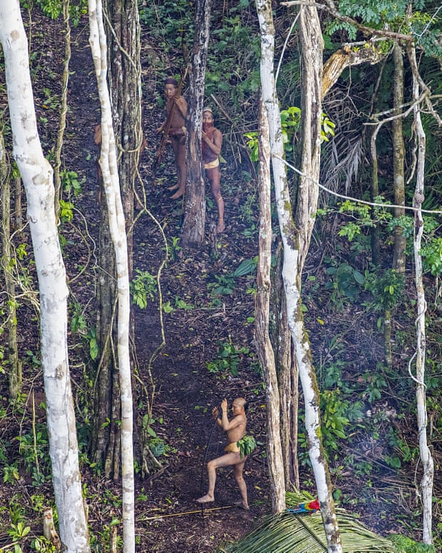 El fotógrafo brasileño Ricardo Stuckert se encontró un poblado indígena hace un par de días en el estado de Acre, cerca de la frontera con Perú. Brasil tiene cerca de 80 grupos no contactados, cuya existencia se encuentra en riesgo debido a la tala ilegal, la minería y al tráfico de drogas. Los pobladores evidentemente se mostraron impresionados por el helicóptero, si bien utilizan machetes y palas, por lo cual no están absolutamente libres de la civilización.